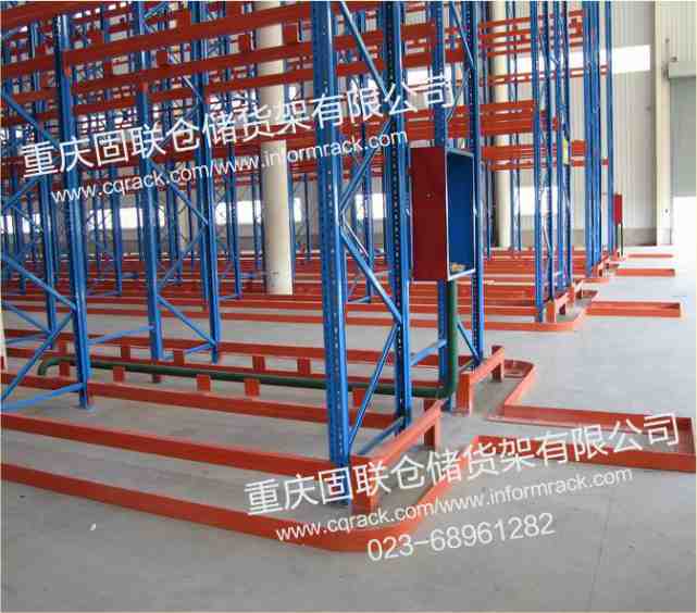 窄巷式貨架安裝后有高約200MM的導(dǎo)軌(導(dǎo)軌可在土建時(shí)做好,也可在安裝貨架時(shí)用做好的護(hù)板做)做為叉車的引導(dǎo)系統(tǒng),減少叉車司機(jī)因人為因素對(duì)貨架產(chǎn)生的危險(xiǎn)。