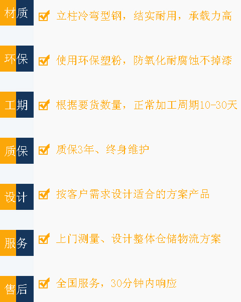 公司目前已承接了上萬座貨架工程的設計、制造和安裝。質(zhì)量第一、信譽至上、服務至上是我們的宗旨;為顧客度身制訂及傳遞現(xiàn)代化的倉儲管理理念是我們的職責;合理化、效率化、人性化是我們追求的目標。“專業(yè)品質(zhì)、用戶滿意”是企業(yè)的質(zhì)量方針,公司正以先進的管理、現(xiàn)代化的設備、高速的發(fā)展速度向國際現(xiàn)代化物流設備企業(yè)邁進。