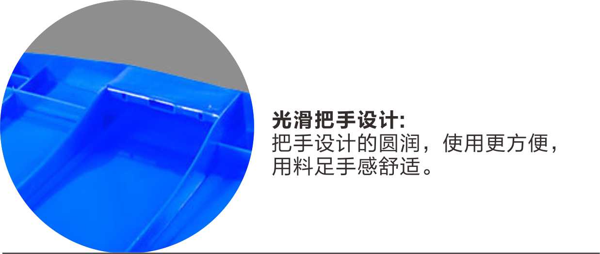 把手:完全按照人體工程學(xué)的原理進行設(shè)計,圓弧形的把手設(shè)計更趨于舒適性、操作方便,便于人工搬運。